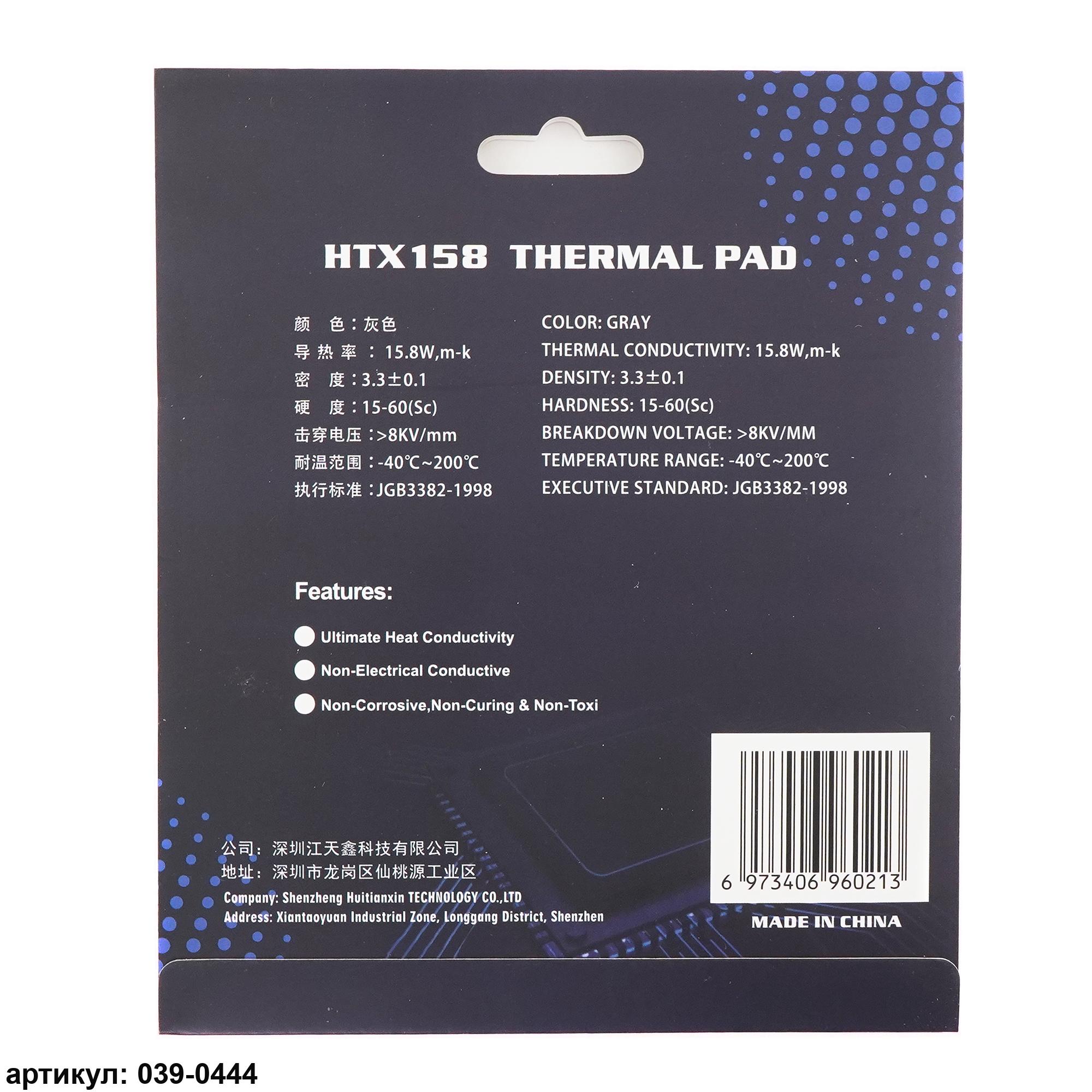Термопрокладка 120x120х3 мм Hutixi HTX158 Thermal Pad 15.8 Вт/(м*К)