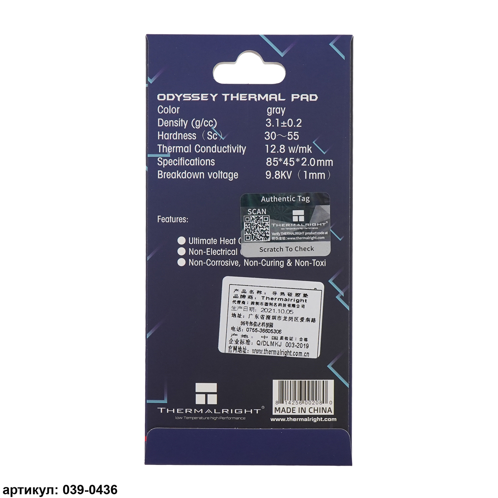 Термопрокладка 85x45х2.0 мм Thermalright Extreme 12.8 Вт/(м*К)
