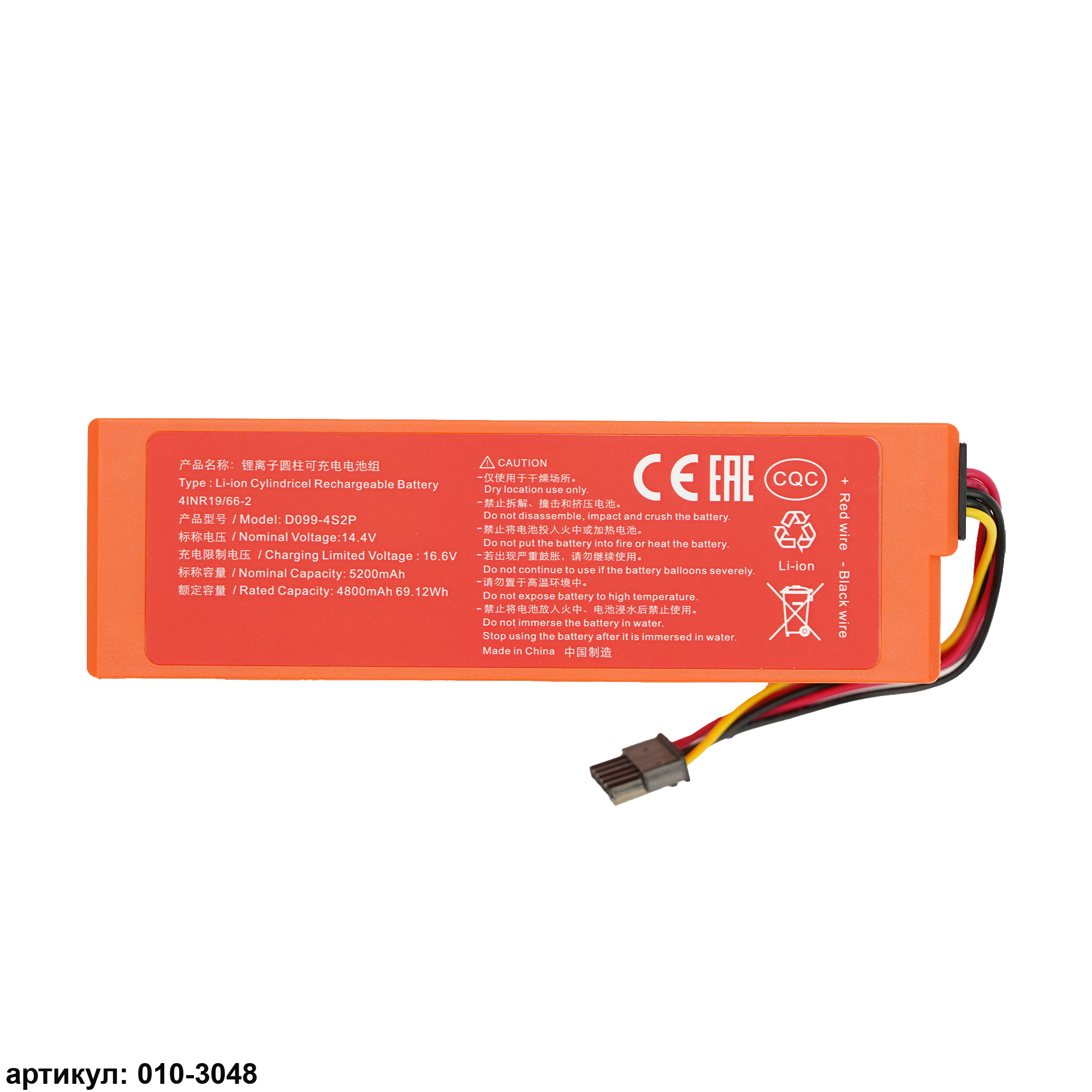 Подходит к пылесосам: Xiaomi MJST1S, MJST1SHW, MJST1S 2 Pro, MJSTP, Mop 2, 2 LDS 2nd, 2 Pro - MJST1SHW, Mi Robot Vacuum Mop 2 Pro Black - BHR5204EU, Mi Robot Vacuum Mop 2 Pro+ - BHR4707GL, Mijia Robot Vacuum-Mop LDS 2 - MJST1S, Robot Vacuum Floor Sweeper and Washer - MJSTP, Vacuum Cleaner Pro - MJSTS1Совместимые p/n: D099-4S2P, 260S-INR-MH1-4S1P, S1-260-4S2P, 260S-INR-MH1-4S2P, NV-XMT200VX