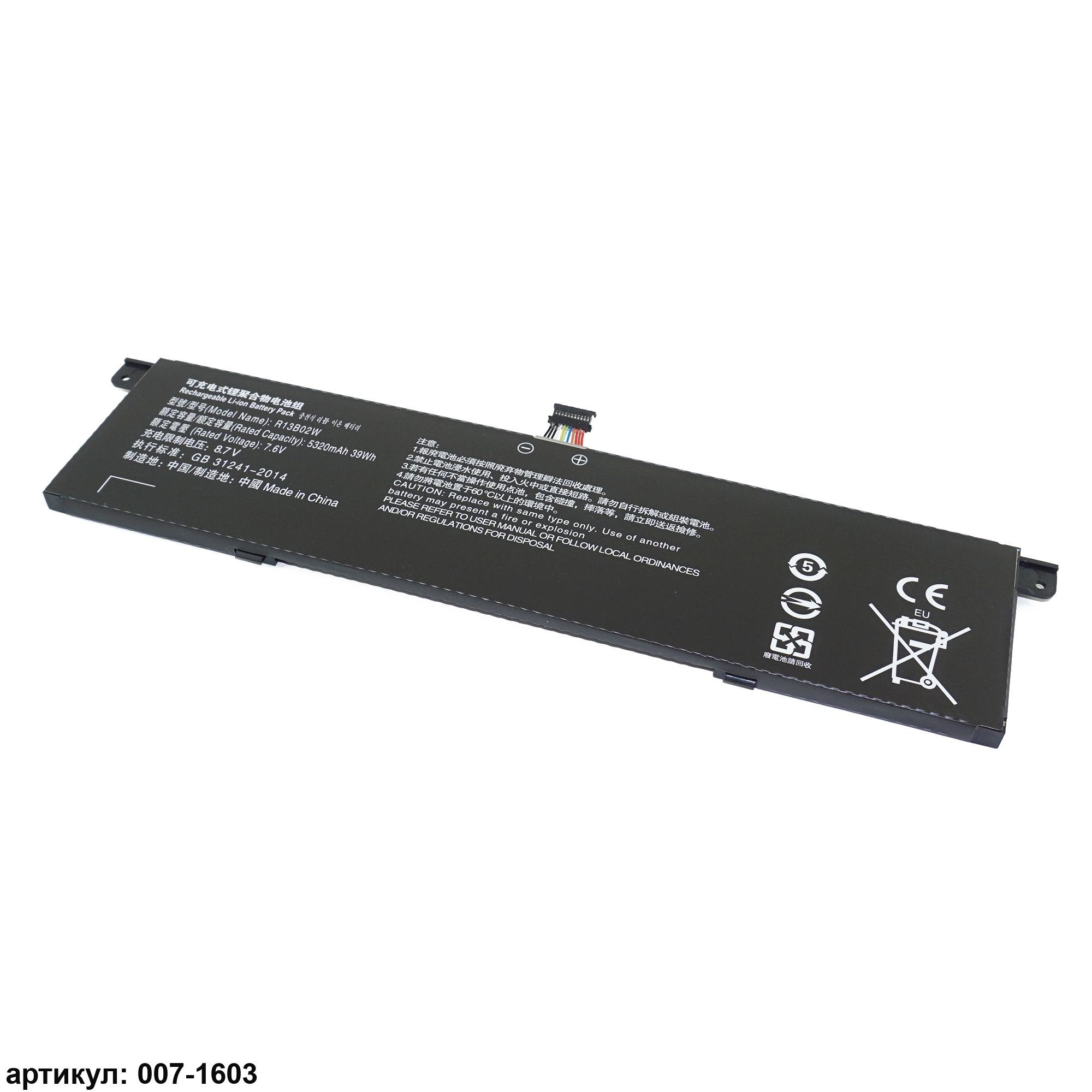 Подходит к сериям ноутбуков: Xiaomi Mi Notebook Air 13.3'Совместимые P/N: R13B02W, R13B01W